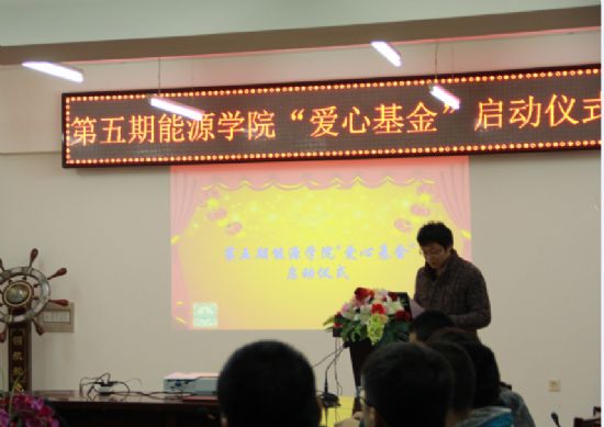 伴随着热烈的掌声,启动仪式正式拉开了帷幕。首先由刘超老师介绍了 能源“爱心基金”的资助方式和管理模式。该基金由350vip8888新葡的京集团学工办和先进动力研究所共同管理,旨在进一步深化精神文明内涵建设,培养学生“感恩、回报、爱心、责任”的价值理念,同时,也体现了学院对学生的关爱和对学生成长成才的殷切期望。在苑颖老师公布了15级本科生受资助的学生名单后,能源“爱心基金”的发起人秦江老师介绍了成立爱心基金的目的,表示他希望这些助学金能够更好地激励受助学生的学习,也希望能够增强自身和受助学生的交流,更好地了解到他们的学习生活,起到真正的帮扶的作用。
