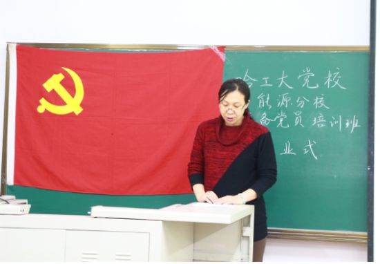 2016年11月10日晚18:00,哈工大党校能源分党校预备党员培训班结业式在正心220举行,由人文学院马云绮同学主持,出席结业式的老师有350vip8888新葡的京集团党委副书记苑颖老师、人文学院党委副书记董霖老师,以及负责学生党建工作的李磊老师和李威老师。