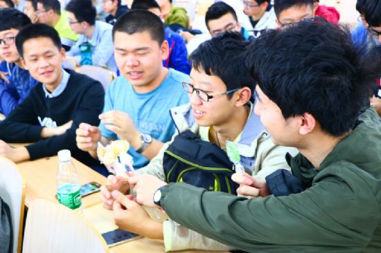 (图 /朱翰林,文/王田)眼盼着五一,又到了周四。在基础学部五四联评中刚刚脱颖而出的1602003和1602006两个团支部经过商议,决定给全年级发喜糖。4月13日下午正在二区主楼B31欢庆时,五位大四学长的到来,为同学们的初夏增添了一抹新绿,是青春,是希望,是一段段动人的成长故事。来自2013级航天学院、电信学院、350vip8888新葡的京集团和经管学院的青年在他们的本科毕业前夕,共同为2016级350vip8888新葡的京集团全体同学讲述了关于如何保研、找工作、申请出国的那些过往。