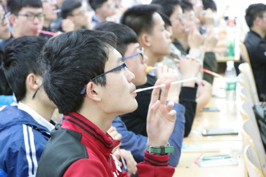 喜在心里:“种一棵树最好的时间是十年前,其次是现在。你们要让种子在心里慢慢发芽”。经管学院的魏语良选择了本科毕业之后直接参加工作,曾任校青协主席、目前手里捏着十多家大型地产公司的offer,一上台时大一同学们就感受到了“霸道总裁”的气息,他将个人二维码打在屏幕上,欢迎学弟学妹在将来有问题时随时联系。他结合自身找工作的经验,告诉所有同学要如何尽早认识和了解自己的需求,既然早晚要就业,那么何不早些挖掘自己适合的工作类型、工作性质和工作方向,找到自己最喜欢的、伴随着自己大半生的一份职业。“大家作为大一的小鲜肉,你们还这样年轻,千万不要害怕尝试、不要害怕失败,不要什么事情都急于有所回报,十年树木、百年树人,一切都需要时间的磨砺和锤炼”。