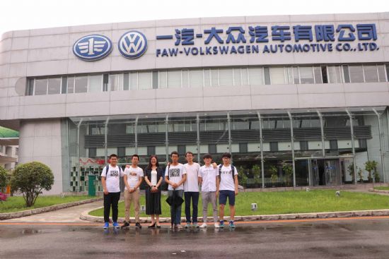 4、用创新与高效引领行业未来—一汽-大众:一汽作为中国最大的汽车生产企业之一,一直引领着中国汽车制造业的先进水平。此次一进入奥迪系列轿车的装配车间,同学们就被各种大型器械以及自动化设备所深深吸引,“目前我们每一台奥迪A4L的组装时间是,大家猜一下…119秒”不到两分钟,同学们无不惊叹这样先进的设备、出色的管理机制以及高效的生产模式。24小时全线生产、员工们三班轮换一年四季在岗、到企业参观的每天8轮接待工作,都是企业高效管理、创新应用以及服务市场的关键所在,更是我国在实现汽车制造业的经由之路。时而目瞪口呆、时而啧啧称奇,一个小时的参观根本意犹未尽。