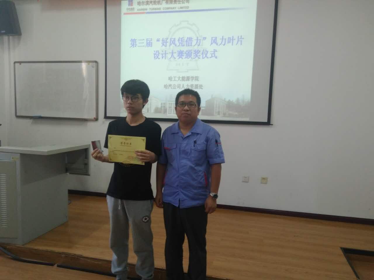 上午同学们首先参观了哈尔滨汽轮机厂有限责任公司展厅,在讲解员的带领下,同学们在时光隧道中感受了哈汽的发展历程,了解哈汽厂在祖国建设的各个时期为国家做出的贡献,亲眼见到了哈汽厂高精尖产品。然后同学们去参观了叶片制造分厂,在那里看到了大型的汽轮机叶片的生产制造过程。参观结束之后同学们参加了“汽轮机叶片设计的基本概念和过程”的讲座,讲授人是在哈汽工作的哈工大毕业生,汽轮机厂研究所气动室主任刘云峰师兄,讲座之后同学们积极向师兄提问,了解到了汽轮机叶片设计加工装配等过程的方法和现阶段汽轮机叶片设计过程中亟待解决的问题,讲座最后由350vip8888新葡的京集团团委书记刘超、汽轮机厂人力资源处综合管理室主任王喜丽以及刘师兄为本次“好风凭借力”风力叶片设计大赛获奖的同学颁发了证书及奖品,本次参访活动圆满结束。