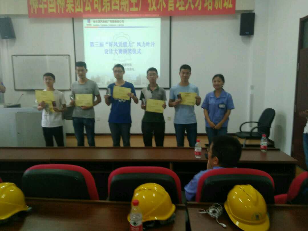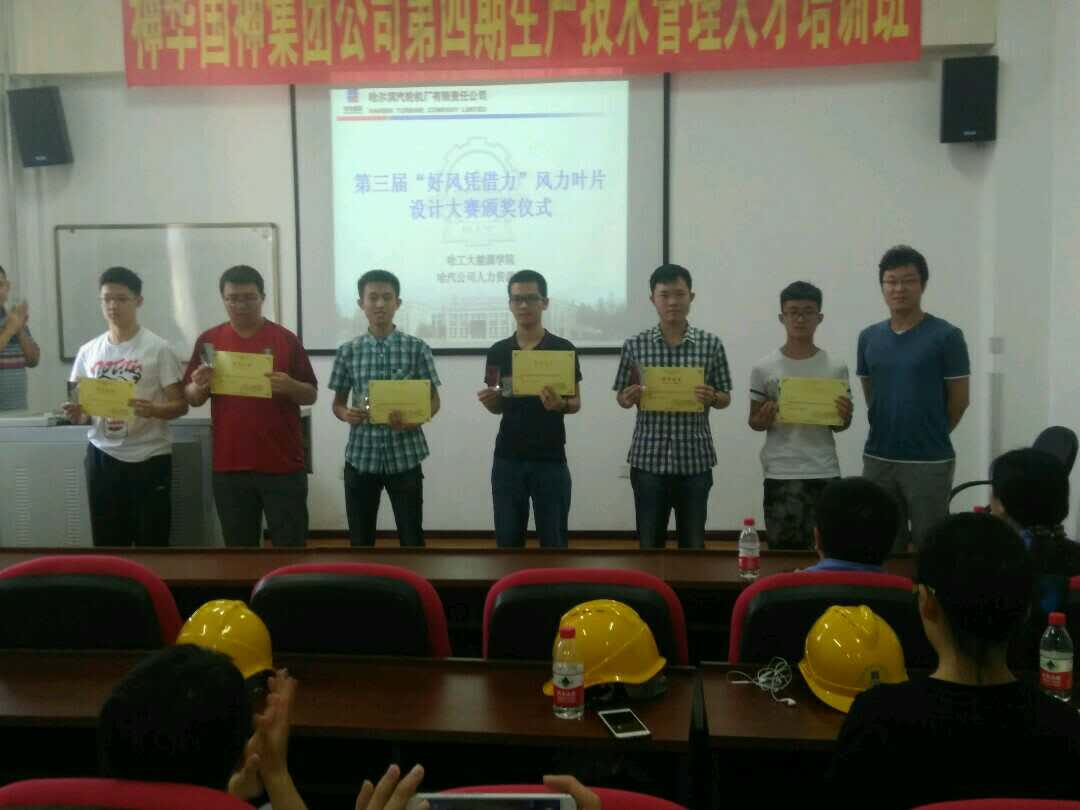 7月25日,350vip8888新葡的京集团第三届“好风凭借力”风力叶片设计大赛获奖团队代表一行25人赴哈尔滨汽轮机厂有限责任公司进行参观访问,并举行了大赛的颁奖仪式。