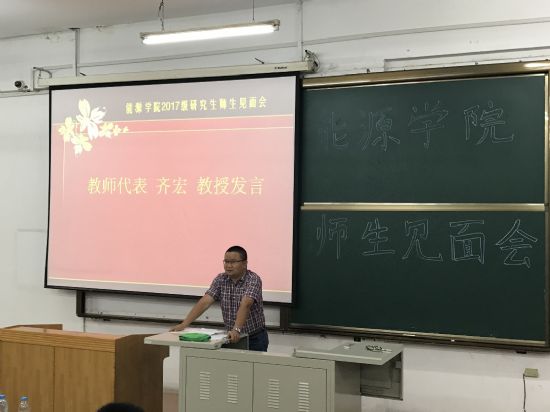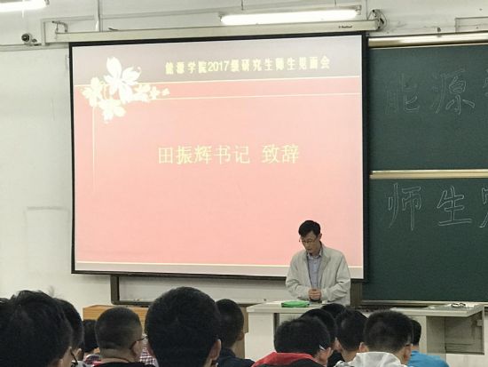 见面会上,田振辉书记首先致辞,他代表学院对新生们表示欢迎,并向全体新生提出殷切期望,希望同学们志存高远,脚踏实地,勤于思考,勇于创新,在短暂且珍贵的两年研究生的时光中提升学术水平,修炼个人品格,成为一名全面发展的工大人。随后,教师代表齐宏教授结合自身经历从生活、学习、科研三方面与同学们分享了对研究生生活的理解,并期望同学们在生活中加强体育锻炼,注意身体健康;在学习中积极开拓思路,勇于提出问题;在科研中满怀学术热情,培养坚毅品格,在工大这个梦开始的地方放飞理想,实现人生价值。