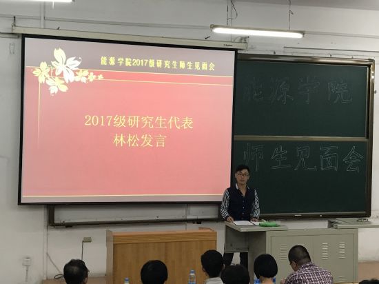 听了老师们的致辞,同学们受益良多。之后,2017级研究生代表林松同学上台发言,他结合自己本科积极参加学生活动的生活经验和潜心学习最终在研究生入学考试中取得第二名的学习经验向大家阐释了自己对工大精神的理解,并表示本届17级研究生会用自己对学术的热爱和对知识的渴求努力成长为优秀的工大研究生。此外,副院长宋彦萍老师也细心向刚步入研究生殿堂的同学们说明关于学习和选课的注意事项,介绍了学院与国外高校共建的专业课程,为同学们了解国外前沿研究提供了良好的平台,本次见面会在同学们热烈的掌声中圆满结束。