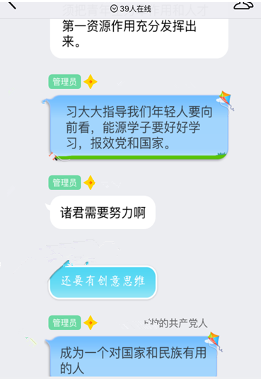 9月20日晚,1602006班团支部分别在A02、A04公寓进行习总书记讲话学习,全体同学参与了讨论。9月21日,1602003班委组织同学们一起学习《论述摘编》,大家一起大致阅读,并且发表了自己的看法。团支部会议结束,大家又在线上积极的进行讨论。9月22日,1602002团支部在线上开展学习《论述摘编》活动。大家纷纷说出自己对该摘编的理解,并结合350vip8888新葡的京集团的实际情况做出自己的奋斗方向。线上会议中,刘强同学表示:“要用创新的思维完成习总书记交给我们的任务。” 1602007班团支部书记朱雨桐也即时搜集了相关资料信息等,组织我学院所有团支书展开讨论,确保在最短的时间里把习总书记的重要指示准确无误地传达给团支部成员。其他各团支部也纷纷用各种方式对摘编内容进行了学习。《习近平关于青少年和共青团工作论述摘编》中提到“青年一代有理想、有担当,国家就有前途,民族就有希望,实现我们的发展目标就有源源不断的强大力量。”这段话让学生们明确了自己肩上的责任,勇于迎接时代的考验。同时在这次讨论中,同学们认识到国家的期望与寄托,明确了自己的任务与目标,同时表示绝不浪费双一流院校的优秀资源,绝不辜负国家与人民。