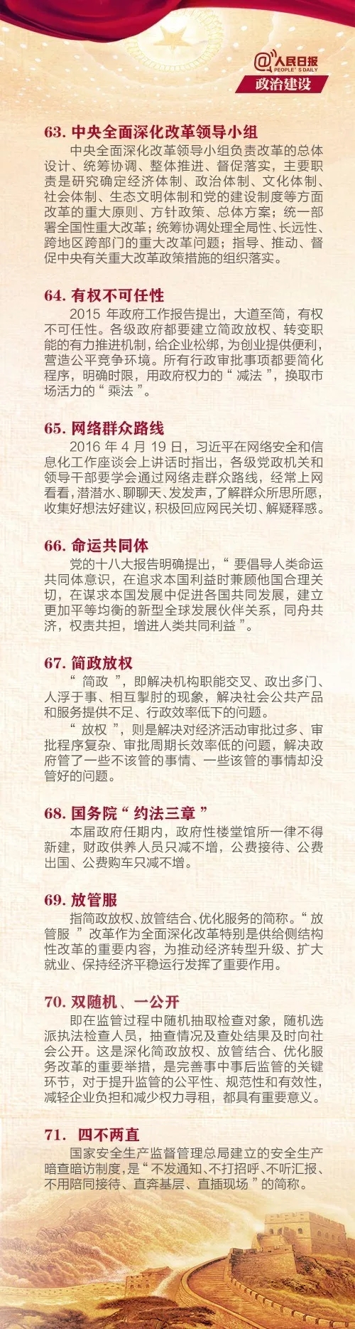 近日,为喜迎十九大的召开,人民日报、新华网、中国共产党新闻网、中国政府网整理了党中央治国理政的一百个新名词:“中国特色社会主义”、“两学一做”、“三严三实”、“四个全面”战略布局、“五大战区”、“分享经济”、“放管服”等最新名词解释应有尽有,350vip8888新葡的京集团团委、学生骨干经过阅读和学习,向所有团员青年发出号召,在各团总支、团支部推广学习,希望团员青年积极学习、踏实认真、不忘初心、砥砺前行,争学榜样、争做榜样,以良好的理论基础、饱满的精神风貌迎接党的十九大。