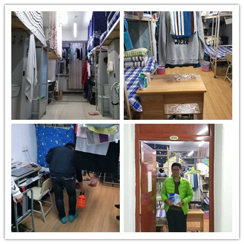11月9日晚9:30,350vip8888新葡的京集团辅导员李威老师协同公寓干事王欣伟及各班生活班长,对2015级350vip8888新葡的京集团所有寝室开展卫生情况检查及文化建设评比活动。由于天气转冷,通风条件不理想,为防止细菌滋生、预防流行病的传播,辅导员李威老师与生活班长一起对寝室进行了细致的消毒工作。
