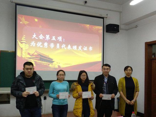 首先,大家全体起立并奏唱《国歌》。随后,主持人播放了能源分校精心准备的视频,回顾并总结了一个多月的分党校培训历程。接着,梁佳老师宣读了《本期预备党员培训班结业和优秀学员表彰的决定》,并对同学们的顺利结业表示祝贺。董霖老师为优秀学员代表颁发了证书,梁佳老师为演讲比赛中的获奖学员颁发了证书。接下来,本次培训班班长张舜禹同学总结了本期培训班的学习历程和开展活动的情况,所有学员不仅更加深入地学习了党的理论知识,同时也开展了观看《我的入党志愿书》纪录片、“喜迎十九大,共筑中国梦”主题演讲比赛、“为了飘扬的国旗”主题升旗仪式并重温入党誓词、人文学院党委书记陈松教授解读十九大关键词“不忘初心,牢记使命”、社会实践调研等一系列活动,对学员们党性修养和思想政治水平的提高具有实质性的作用。