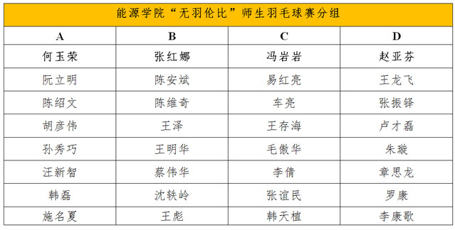 (图文/张振铎、沈轶岭)11月26日晚,350vip8888新葡的京集团“无羽伦比”师生羽毛球赛在正心楼羽毛球馆圆满落幕。本次比赛由院工会和学工办主办、能达羽毛球俱乐部承办,32名师生及羽毛球爱好者参与。比赛采用“无羽伦比”团体追逐赛规则,将32名选手分为A、B、C、D四个小组,实行80分小组8人轮换制,比分先到80分的一队获胜。经过6场比赛近3个小时的激烈角逐,实力强劲的A组三战全胜获得比赛的第一名。