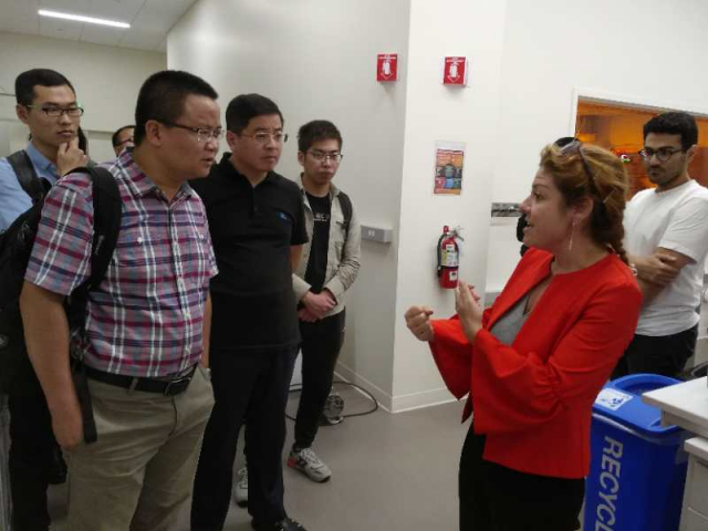在加州大学洛杉矶分校UCLA,能源交流访问团受到了张传新博士、伍环博士和李振兴教授的热情接待。在两位博士及李教授的陪同下,参观了UCLA机械航天系和微纳米实验中心,并了解了机械航天系的研究方向,探讨了双方在纳米流体太阳能利用领域的进一步合作。