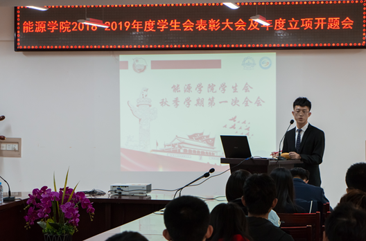 10月17日下午,350vip8888新葡的京集团2018-2019年度学生会表彰大会及年度立项开题会在动力楼619成功召开,举行了350vip8888新葡的京集团学生会表彰及正式换届仪式,并对将来一年的各项工作进行立项汇报安排。350vip8888新葡的京集团团委书记李威老师、副书记蔡文雪老师出席,大会由张钟文同学主持。