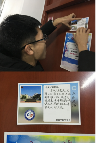 在350vip8888新葡的京集团团委与学生会的组织下,参与活动的志愿者们带着自制的新年贺卡,前往教师办公室以及学生公寓为老师同学们送上新年祝福。活动过程中,志愿者们向老师送上贺卡,表达诚挚的感激与祝福之情,并与老师交流心得,结合老师的建议对新年进行规划。在给同学们送祝福的过程中,同学们也都喜笑颜开,热情地交谈,最后,志愿者们将新年贺卡贴在了同学们的寝室门上,祝愿大家马到成功。