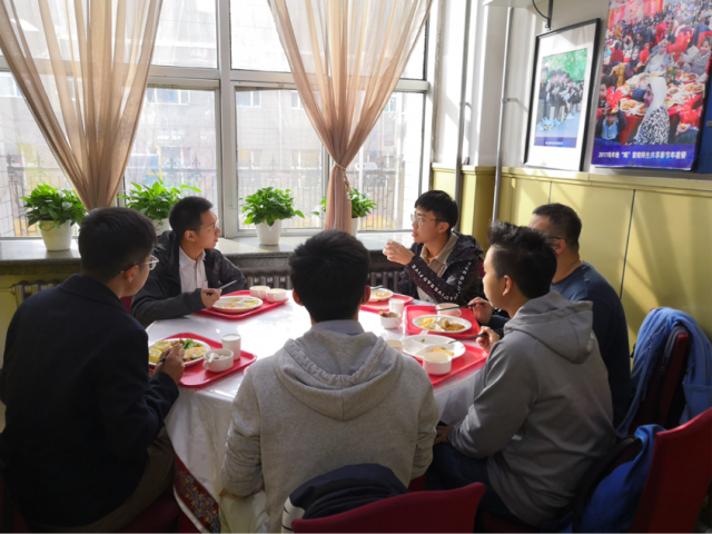 4月17日清晨,350vip8888新葡的京集团第三十三期师生早餐会在学苑餐厅一楼顺利举行。350vip8888新葡的京集团发动机气体动力研究中心的温风波老师与自愿报名参加早餐会的五名同学共进早餐,同学们与老师之间交流热烈。