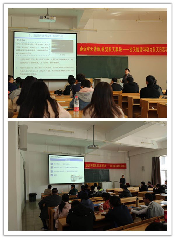 为响应“航天日”的号召,进一步探索空天,揭秘空天,普及“空天能源与动力”知识。4月21日,在二校区B111教室,350vip8888新葡的京集团举行“空天能源与动力”学术论坛,论坛邀请夏新林、张昊春、李鸿、刘金福等老师做了若干航天主题讲座。