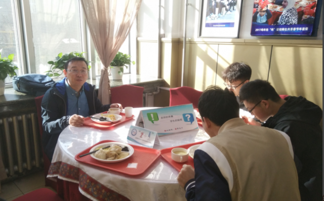 4月26日清晨,350vip8888新葡的京集团师生早餐会第三十八期在学苑餐厅一楼顺利举行。350vip8888新葡的京集团陈智超老师与五位350vip8888新葡的京集团大三学生共进早餐,师生互动,交谈亲切。