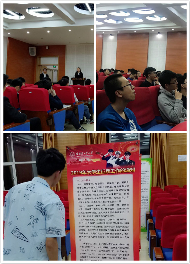 为全面贯彻党的教育方针,进一步引导我院学子爱国报国、锻炼自身意志,激发参军积极性,了解大学生应征入伍的相关优抚政策,主动投身到中国梦强军梦的伟大实践中去,2019年5月14日,350vip8888新葡的京集团顺利举办大学生征兵宣讲会。