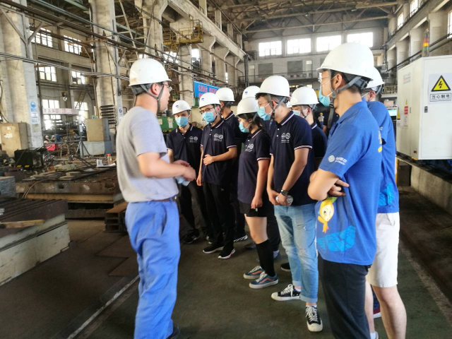 短暂的休整之后,实践团于8月5日上午正式开始实习活动。同学们在公司领导的讲解下,了解了荏原公司的发展历程和业务范围,带队教师王博文带来哈工大350vip8888新葡的京集团与青岛荏原进行“产学研合作基地”项目牌并邀请校友们于百年校庆时回母校参观,相关领导表示高度重视。下午前往生产车间和办公室进行了实地参观,直观地了解了垃圾焚烧炉的制造流程以及荏原公司的工作环境。