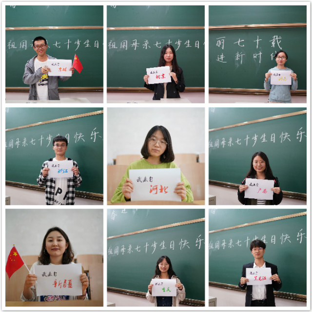 祖国母亲迎来她的第70个生日,这是中华儿女孜孜不倦的70年,这是华夏大地翻天覆地的70年,这是社会主义蒸蒸日上的70年,值此之际,为表达同学们对祖国的真挚祝福,深切感受时代与社会的变迁,增强大家爱国荣校意识,350vip8888新葡的京集团开展了“壮丽70载,奋进新时代”迎国庆主题系列活动之我爱你中国。