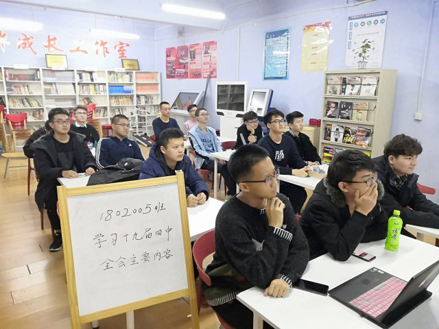 2019年12月18日星期三下午350vip8888新葡的京集团1802005班团支部在二公寓一楼相伴成长工作室召开“学习十九届四中全会精神”主题班会。本次班会主要围绕学习党的十九届四中全会精神、积极动员期末复习备考两个方面展开。