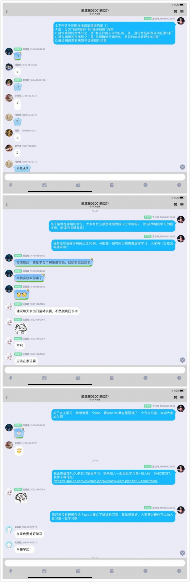 为增强广大团员抗击疫情的信心,展现团员青年居家学习的风采,4月26日上午,350vip8888新葡的京集团1802001团支部在团支书王怡玮的组织下,有序开展了主题为“战斗团支部·居家抗‘疫’展风采”的线上团日活动。班级同学通过QQ群在线沟通交流,积极参与到传染病防控与防疫知识竞答的活动中,并在活动后积极交流疫情期间居家学习方面的经历与感受,分享自己的防疫心得和思想收获。