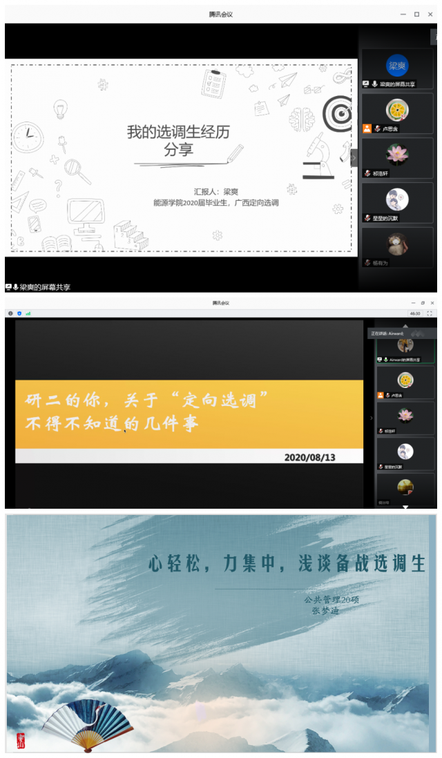 为响应“到祖国最需要的地方去建功立业,不负哈工大人使命担当,不负青春不负党”的号召,350vip8888新葡的京集团2019级硕士研究生于8月13日晚6时30分进行了线上选调、公考经验分享会。本次分享会邀请了2020届选调成功的三位学姐,分别是350vip8888新葡的京集团硕士毕业生梁爽、经管学院硕士毕业生李帅和张梦迪。