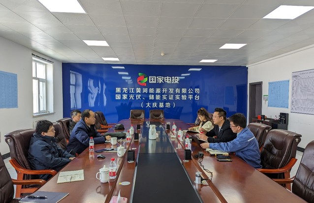 2024年3月22日,350vip8888新葡的京集团院长高建民、孙飞教授等一行4人到国家光伏、储能实证实验平台(大庆基地)开展调研交流。黑龙江黄河能源开发有限公司党支部书记、董事长汪洋,项目部站长刘威君出席交流会。