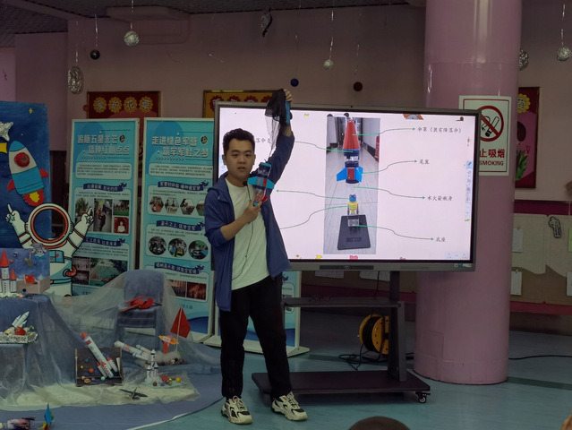 在水火箭实验中,志愿者们向小朋友们展示了如何利用水和气压的原理,制作并发射水火箭。小朋友们兴致勃勃地观察着火箭升空的壮观景象,不仅学到了科学知识,还体验到了实践的乐趣。